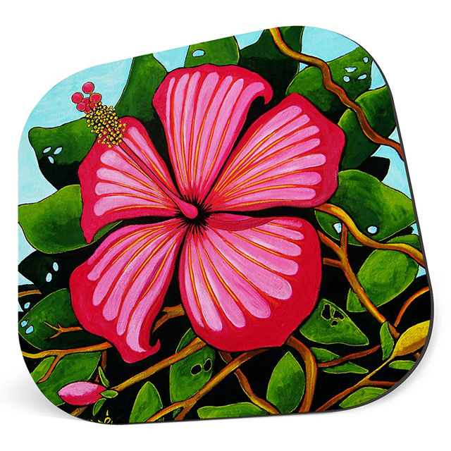 Set of 4 Happy Hibiscus Hardboard Coasters.